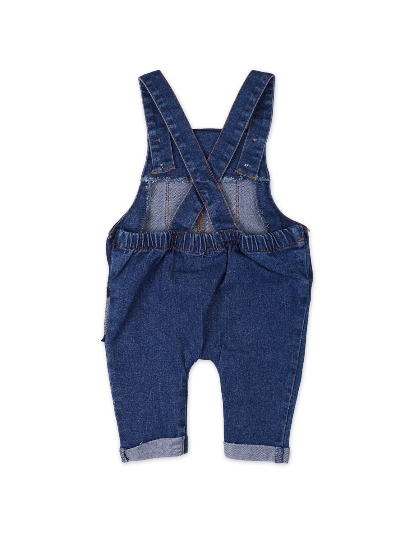 The dungaree comes with shoulder button closures and snap buttons at the bottom for quick and hassle-free diaper changes.