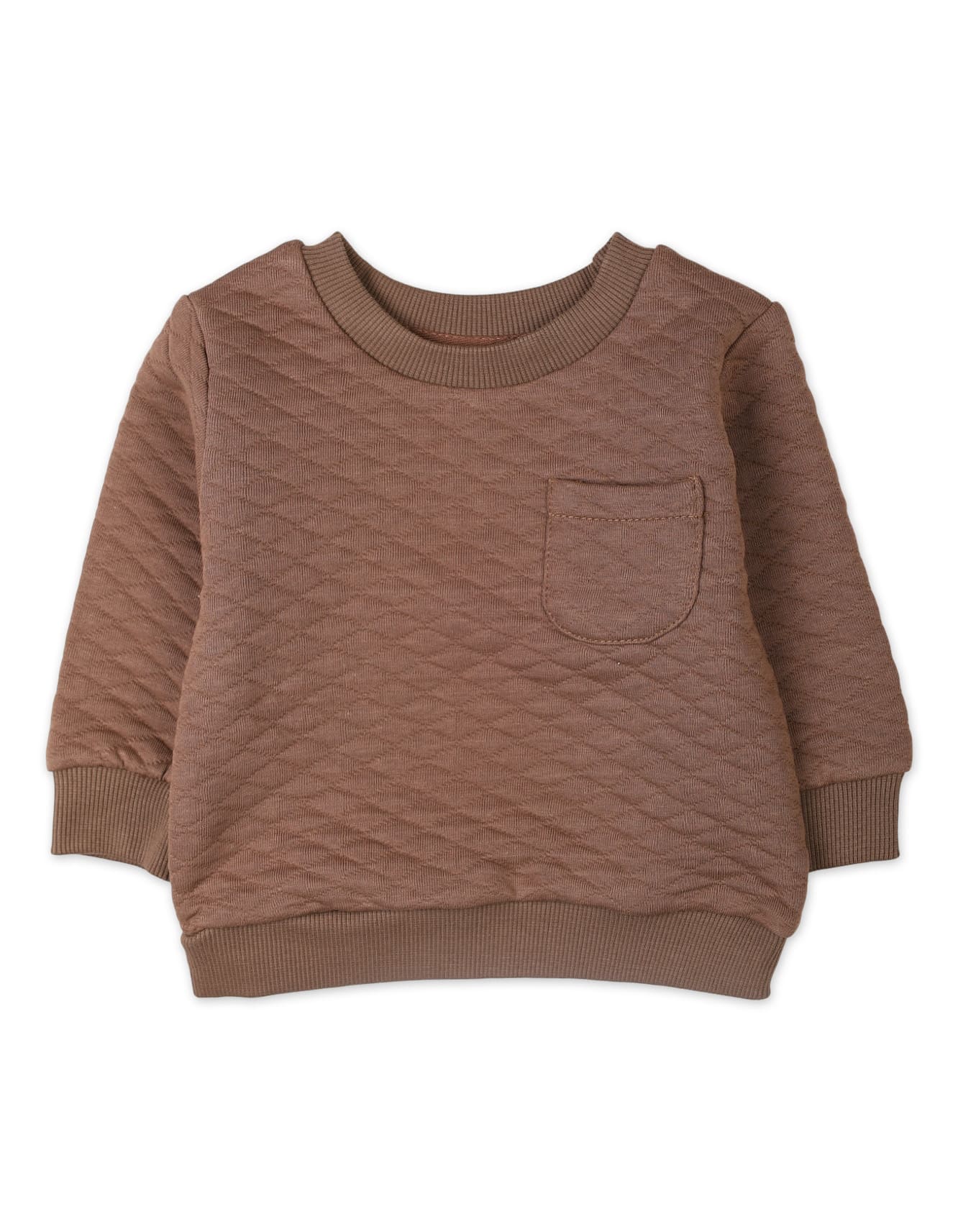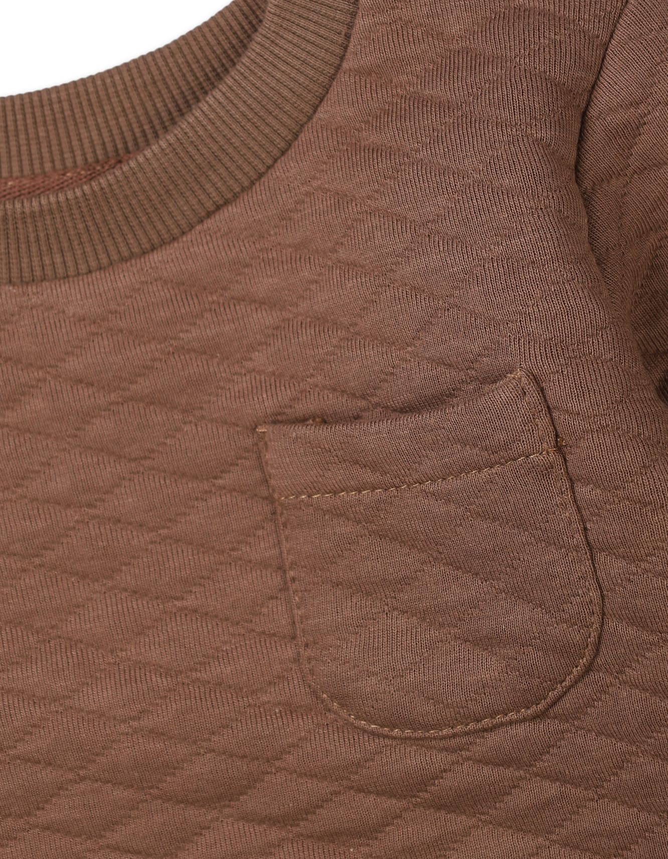 • Quilted Sweatshirt (Brown) – Ultra-soft quilted texture for warmth, ribbed neckline and cuffs for a snug, comfy fit, plus a cute front pocket.