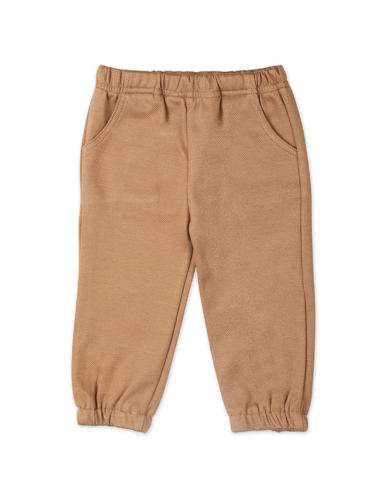 The long-sleeve hooded top comes with a stylish button-down front, two flap chest pockets, and soft, baby-friendly fabric that ensures all-day comfort. The beige color gives the outfit a rich, classic look perfect for winter. The matching jogger pants include a stretchy elastic waistband, side pockets, and elasticized ankle cuffs, offering an ideal combination of comfort, warmth, and flexibility for crawling, walking, and active play.