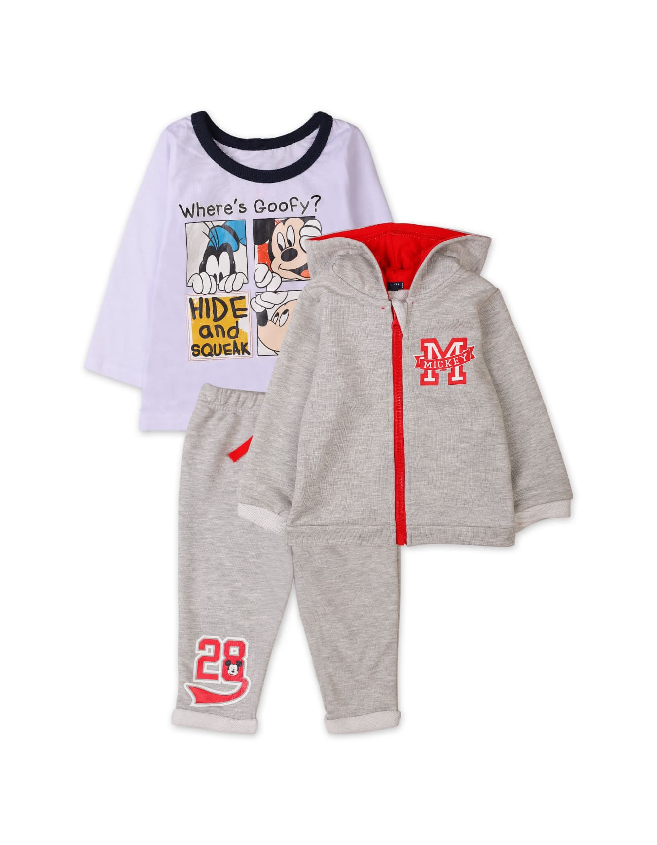 Baby Boys 3 Piece Suit Sets Bambies Mickey Print Hoodie, T-Shirt and Pants in Grey at Zubaidas Pakistan