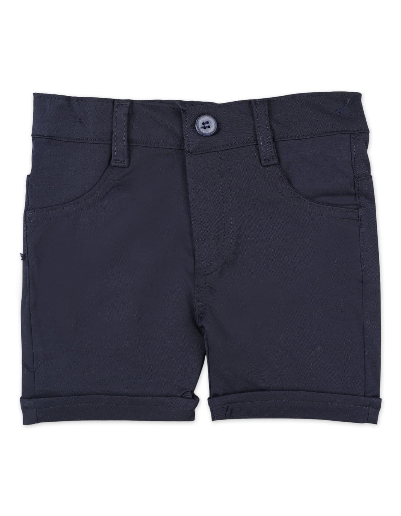 Sophisticated Tailoring: The navy shorts feature a formal button-front and rolled hems, providing a sharp, "grown-up" look for infants and toddlers.