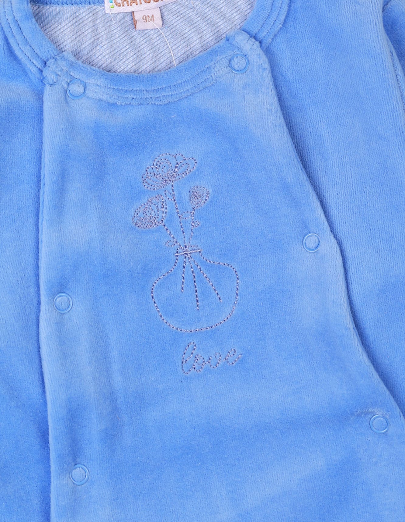 Crafted from ultra-soft cotton fabric, this winter footie is gentle on your baby's delicate skin, offering warmth and comfort without causing overheating. The soothing blue color adds a calming touch, while the adorable "Love" embroidery and floral design bring a playful yet elegant vibe. This versatile footie is perfect for everyday wear, sleep, or gifting for a special occasion.