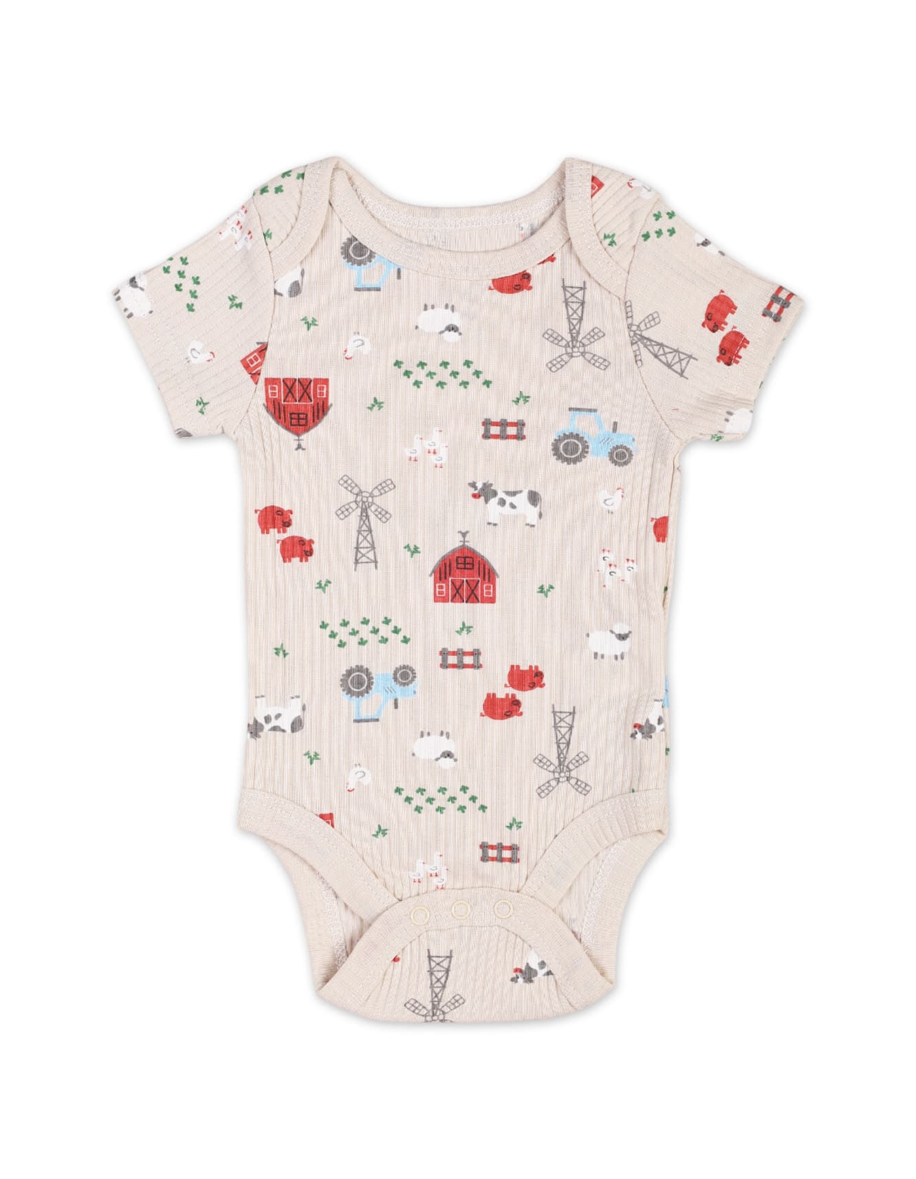 • 1 x Printed Short-Sleeve Bodysuit (Farm-Themed Beige)