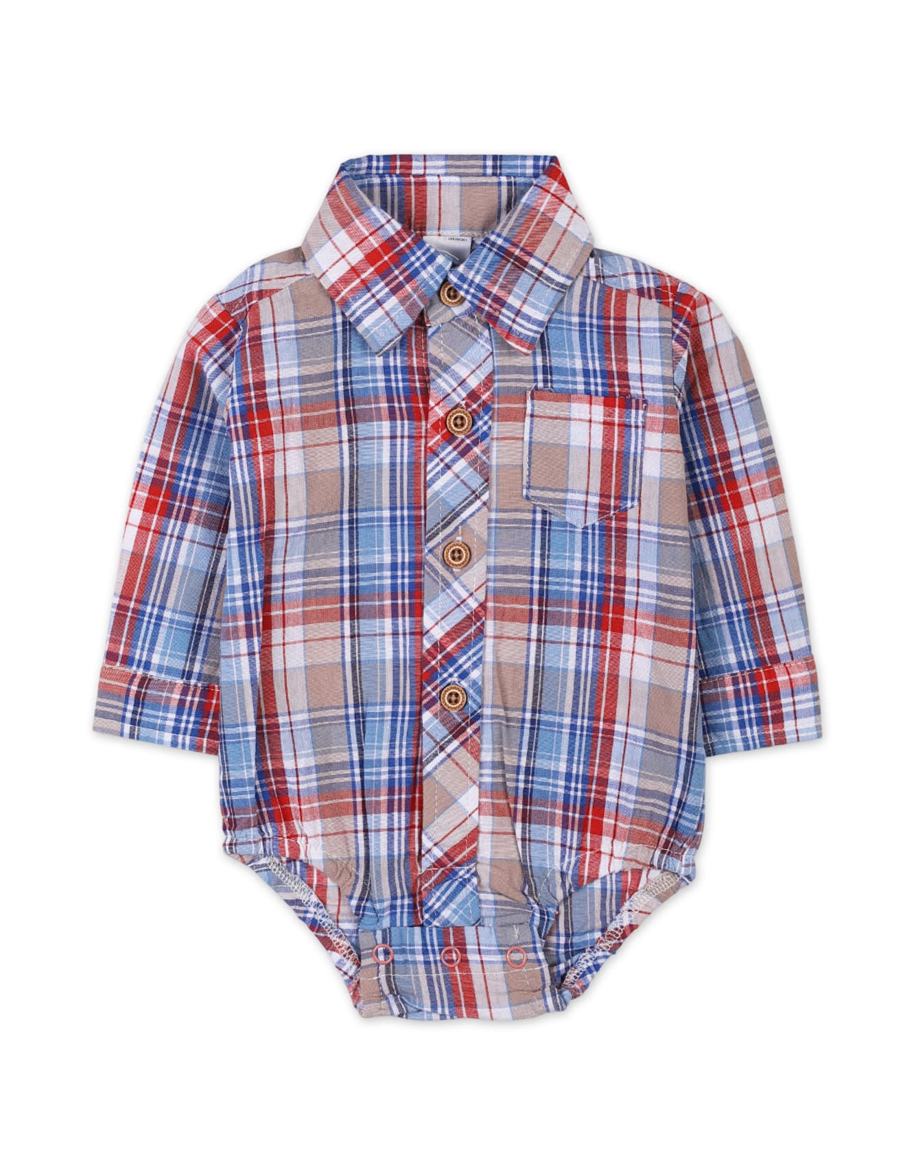 3-Piece Complete Outfit Set: Includes a fun printed bodysuit, a stylish plaid woven shirt-bodysuit, and comfy pants.