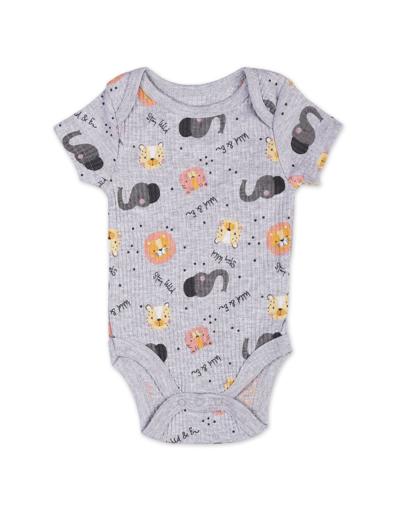 1 x Short-Sleeve Bodysuit (Grey with All-Over Safari Print)