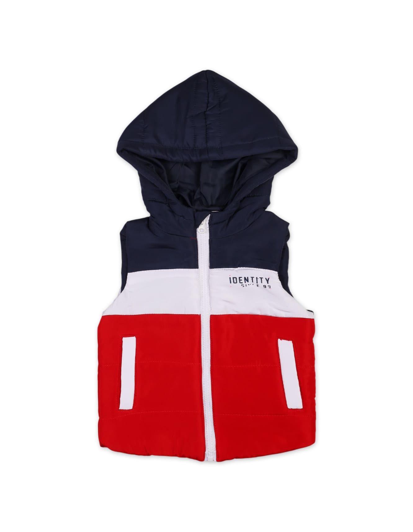 Baby Boys and Boys Winter Puffer Vests Bambies Sleeveless Hooded Navy and Red at Zubaidas