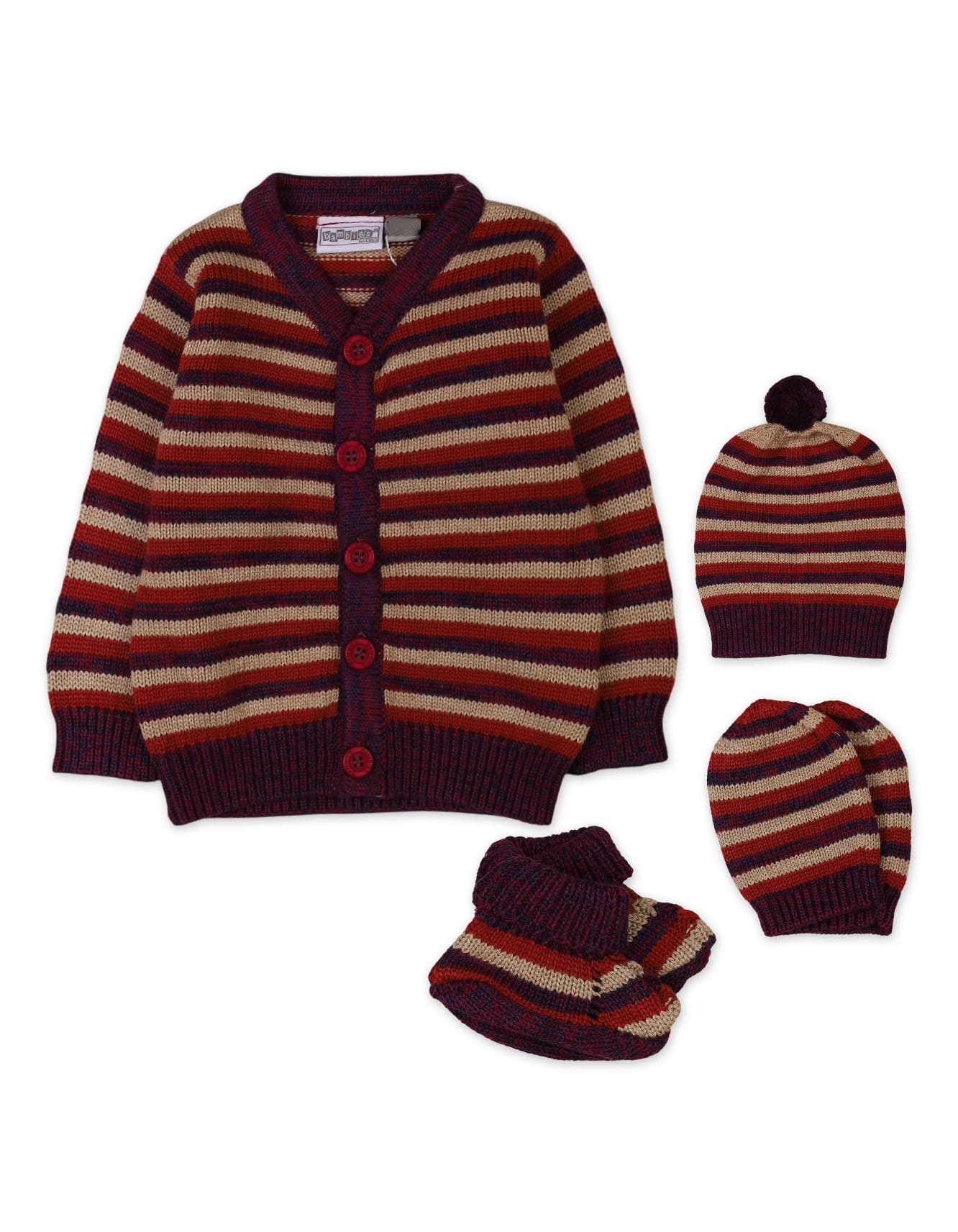 Newborn Baby 4 Pieces Winter Clothing Sets Bambies Striped Maroon at Zubaidas
