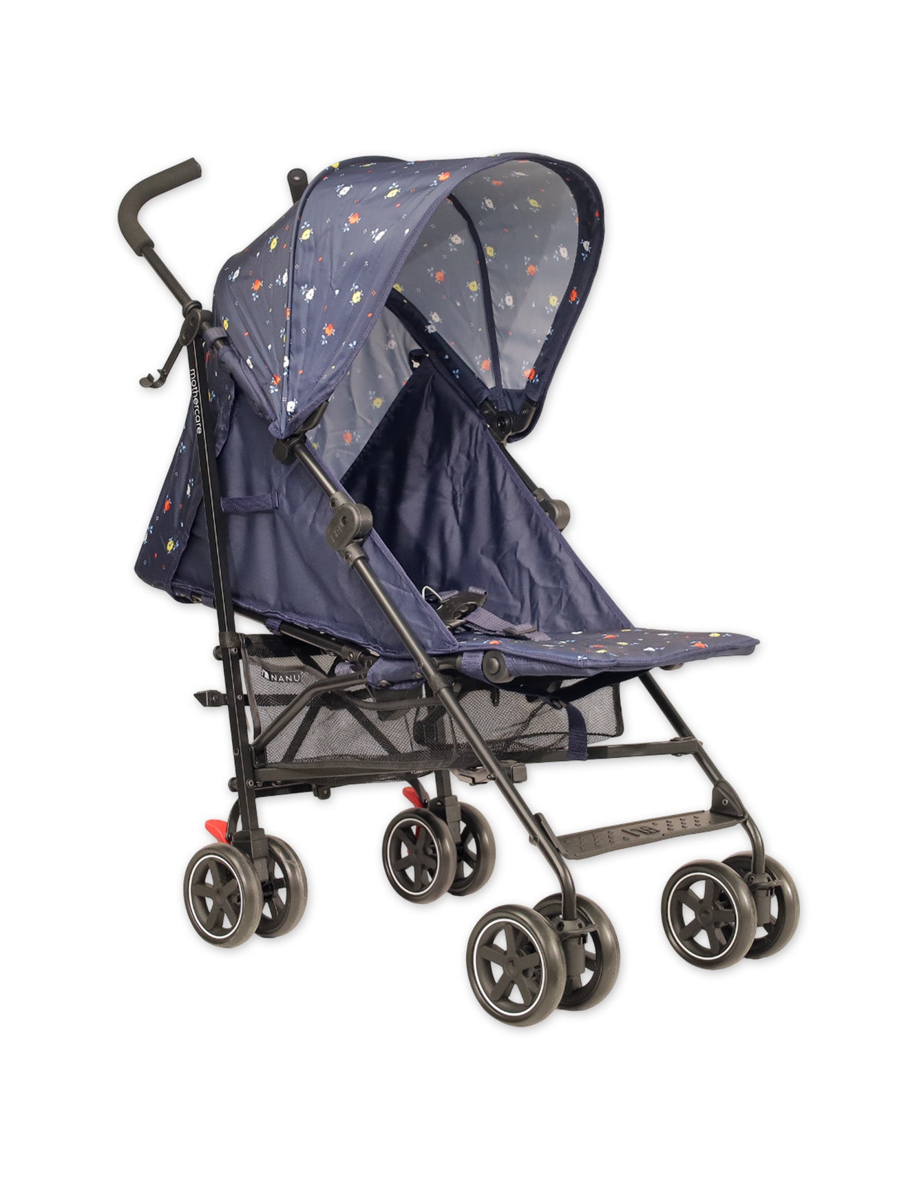 This stroller is lightweight, compact and a great value with a fun print. It is designed to give your child a safe and customised ride from birth to approximately 3-years.The comfy seat unit can be reclined with one hand and the calf rest is adjustable allowing you to easily select the perfect position for when your baby wants to lie back for a nap or sit up to watch the world go by. The five-point harness adjusts to three positions for a comfy, secure fit as your baby grows and a shopping basket under the seat is on hand to store travel essentials. Ready for any weather, this stroller features a handy hood which offers shade and comes with a Mothercare weathershield® for outings on rainy days. When not in use the stroller features a compact, umbrella-style fold for easy storage.