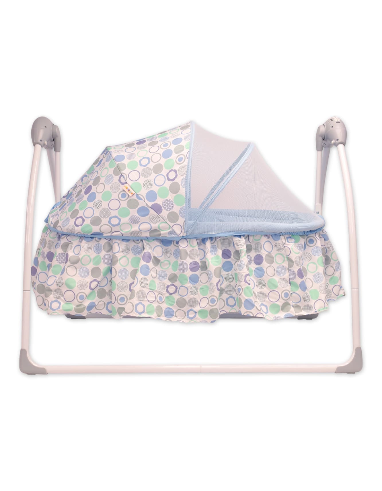 A standout feature of the Swing Bassinet Baby Electric Foldable Bambies Blue BM-SW-011 is its fully foldable frame and foldable cradle, making it exceptionally travel-friendly and easy to store. Whether used at home, outdoors, or during family trips within Pakistan, this foldable bassinet swing delivers maximum convenience for parents who are constantly on the move.