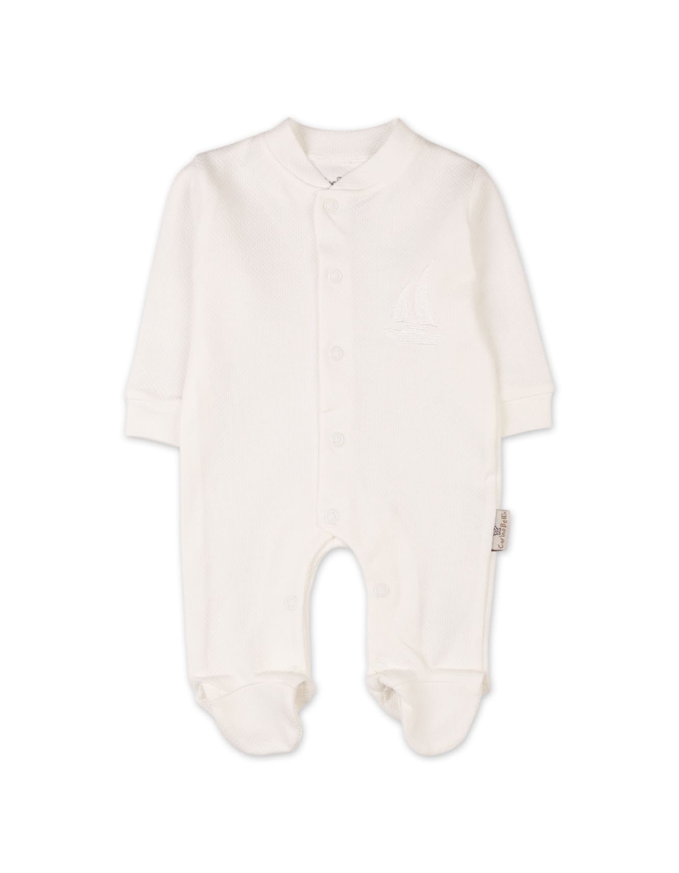 The sleepsuit is crafted from a high-quality, textured cotton blend that is exceptionally gentle on delicate skin. The serene pastel blue color is accented by a charming embroidered sailboat, making it a perfect choice for peaceful sleep or casual daytime wear. Designed with full-length snap fasteners, this romper makes diaper changes quick and easy.