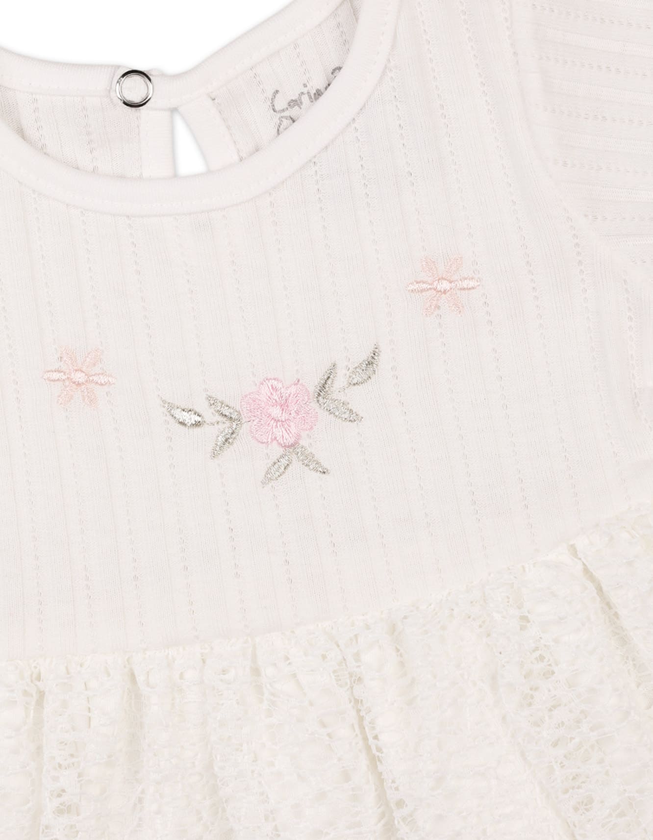 Elegant Embroidery: Carefully detailed with fine floral needlework on the chest, adding a sophisticated and feminine touch to your baby’s wardrobe.