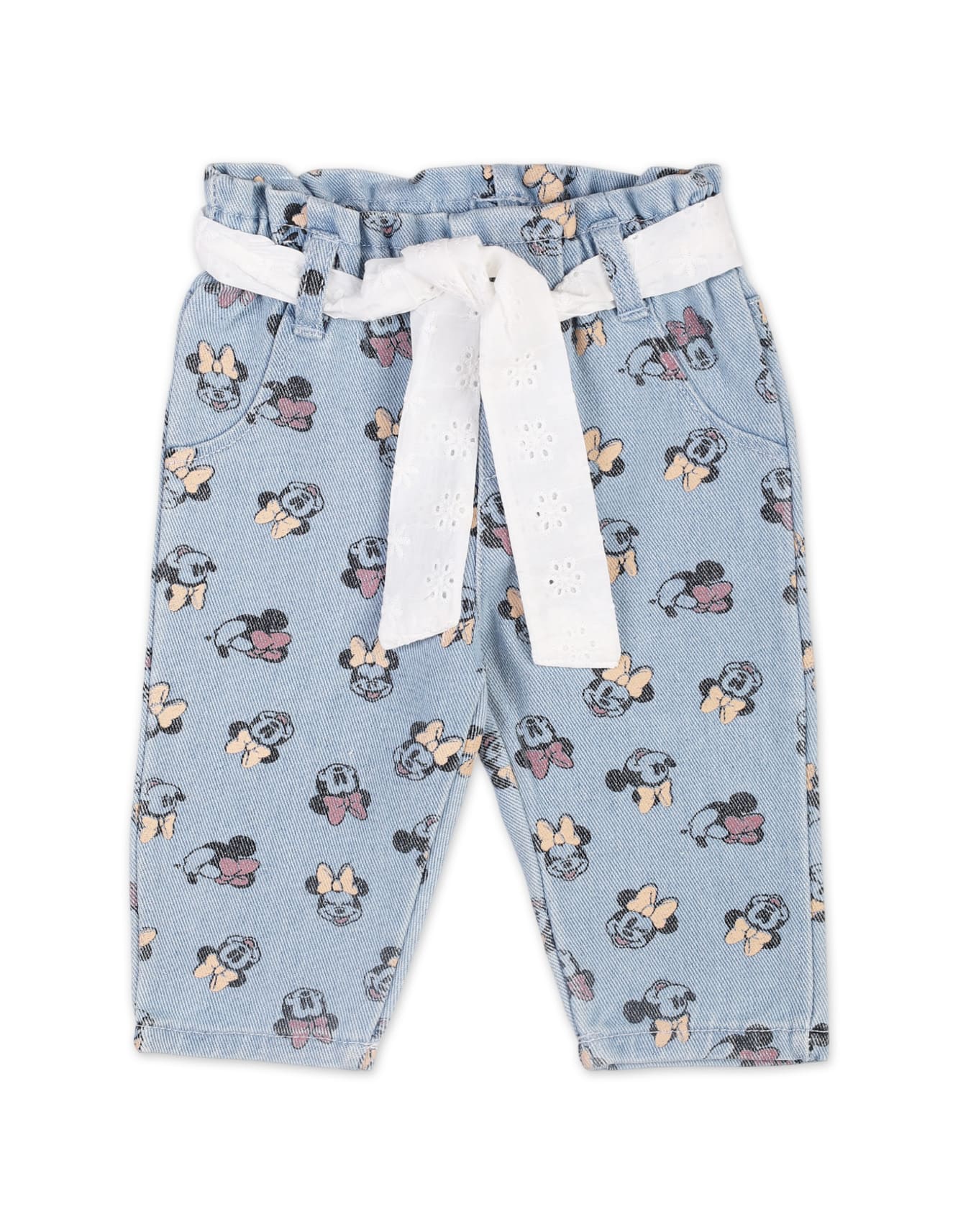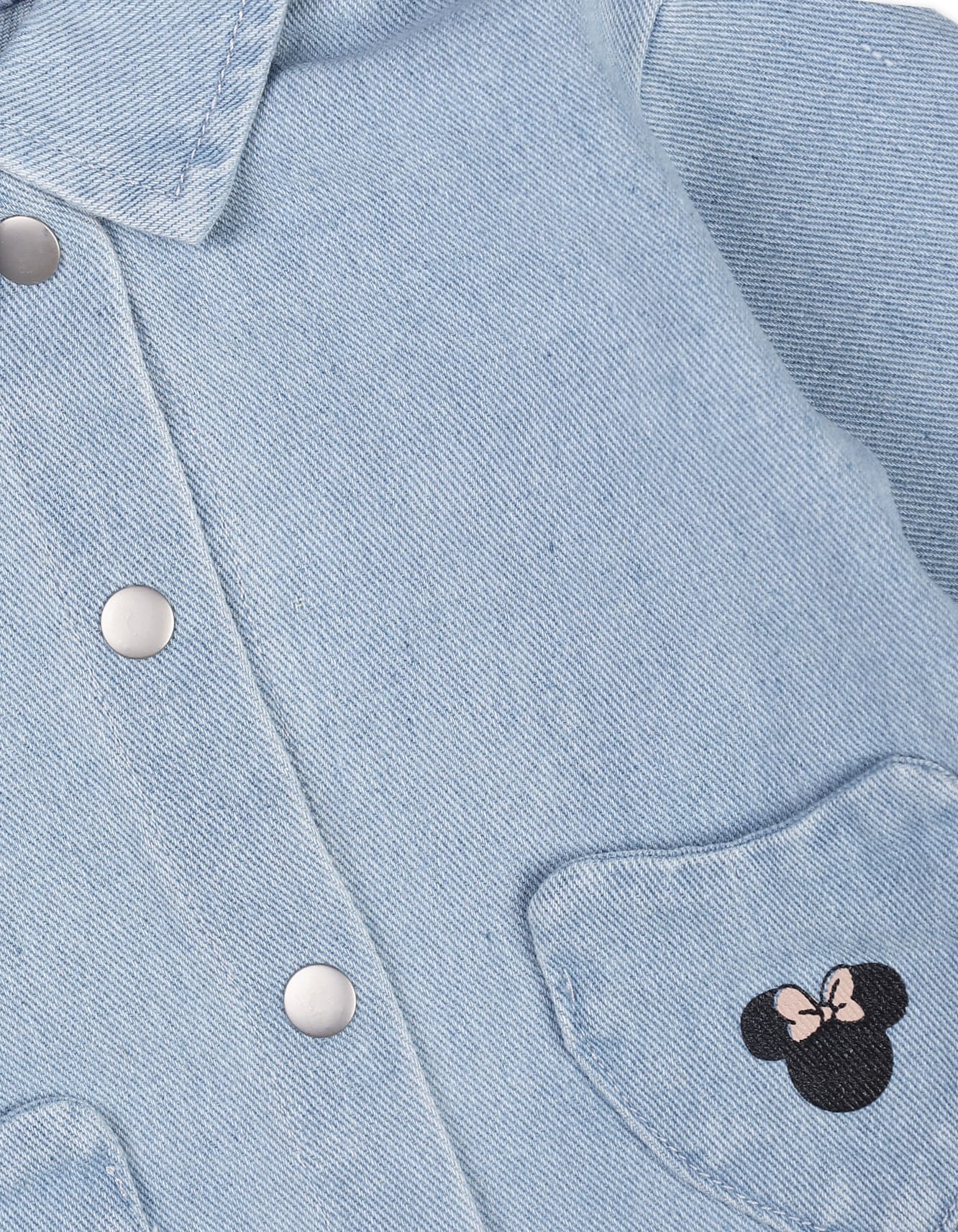 Introducing the Bambies Minnie Denim Suit Set, a beautifully designed 2-pieces little girls’ outfit crafted for comfort, durability, and irresistible cuteness. This charming denim co-ord set includes a denim top featuring Minnie embroidery on the heart-shaped pocket and a matching pair of soft denim trousers with an all-over adorable Minnie print, finished with a delicate white bow at the waistband.