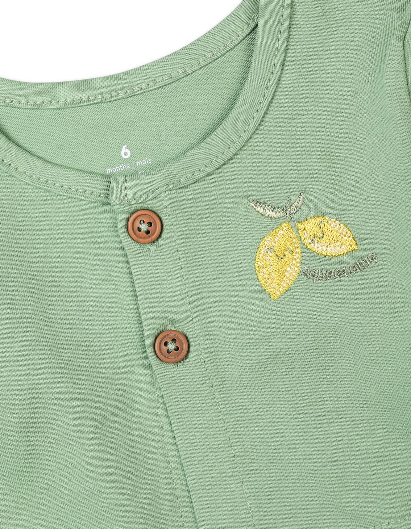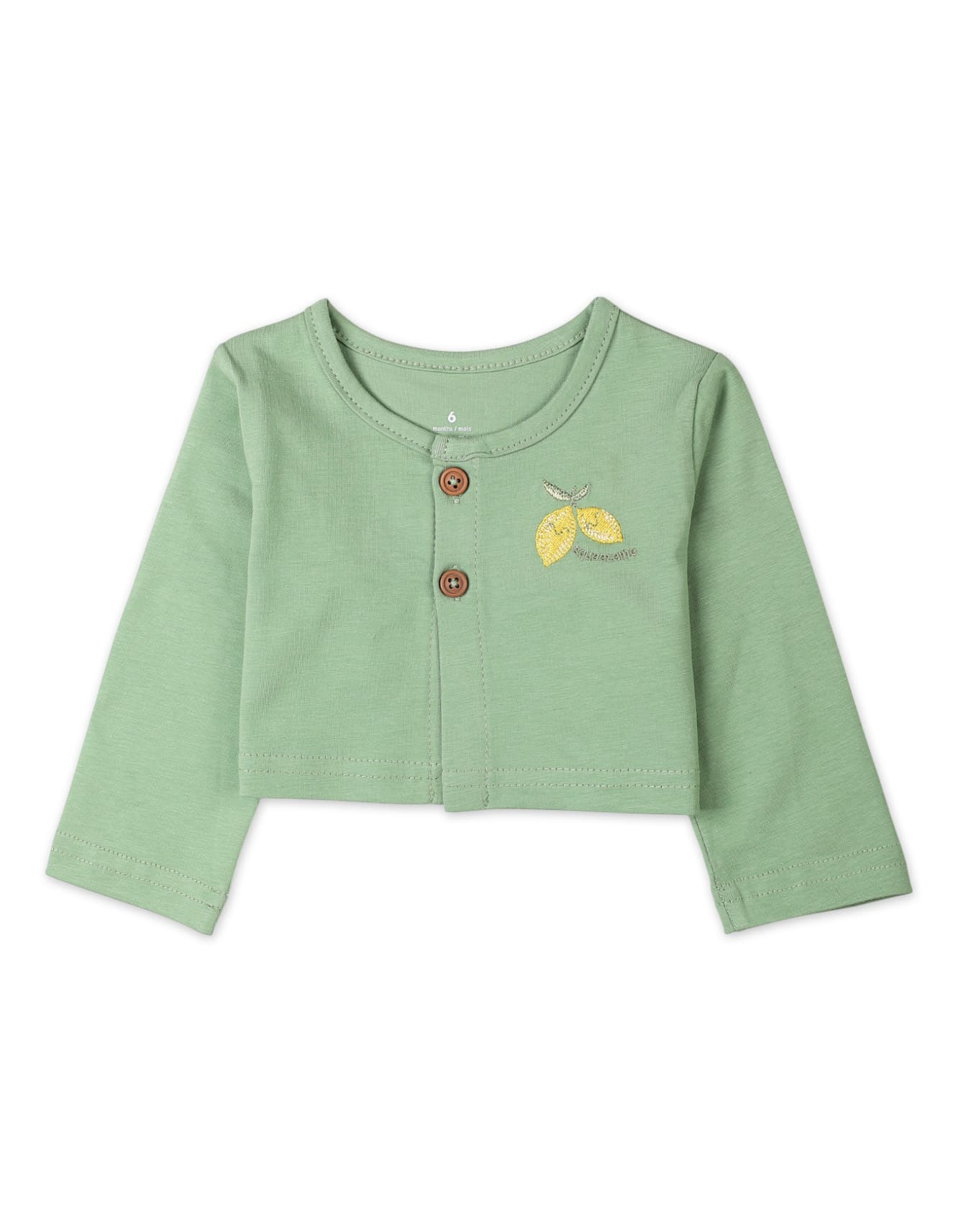 Lightweight cardigan includes a neatly embroidered lemon motif and front buttons for easy layering.