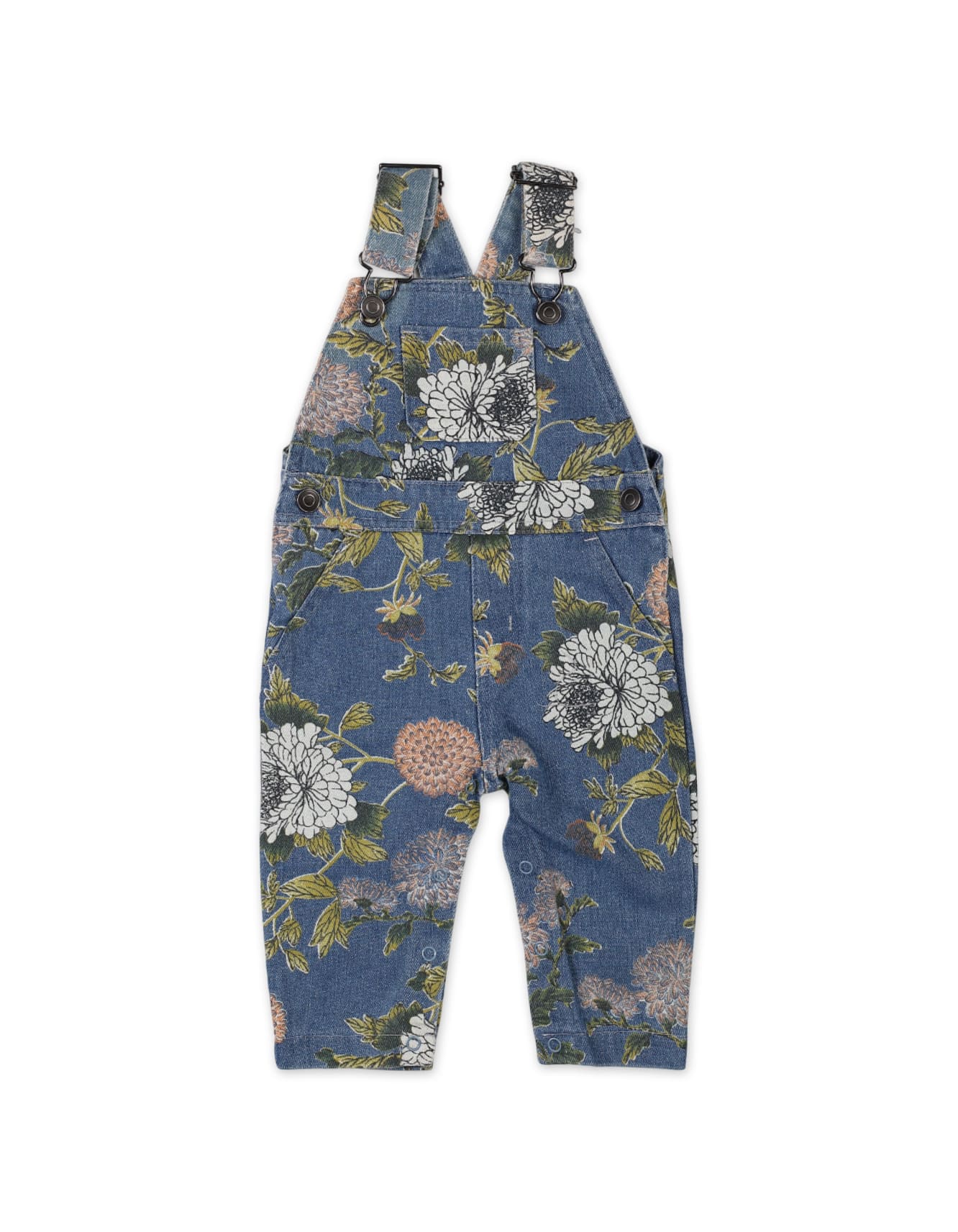 • Blue floral denim-look dungaree with high-quality print and buttoned shoulder straps