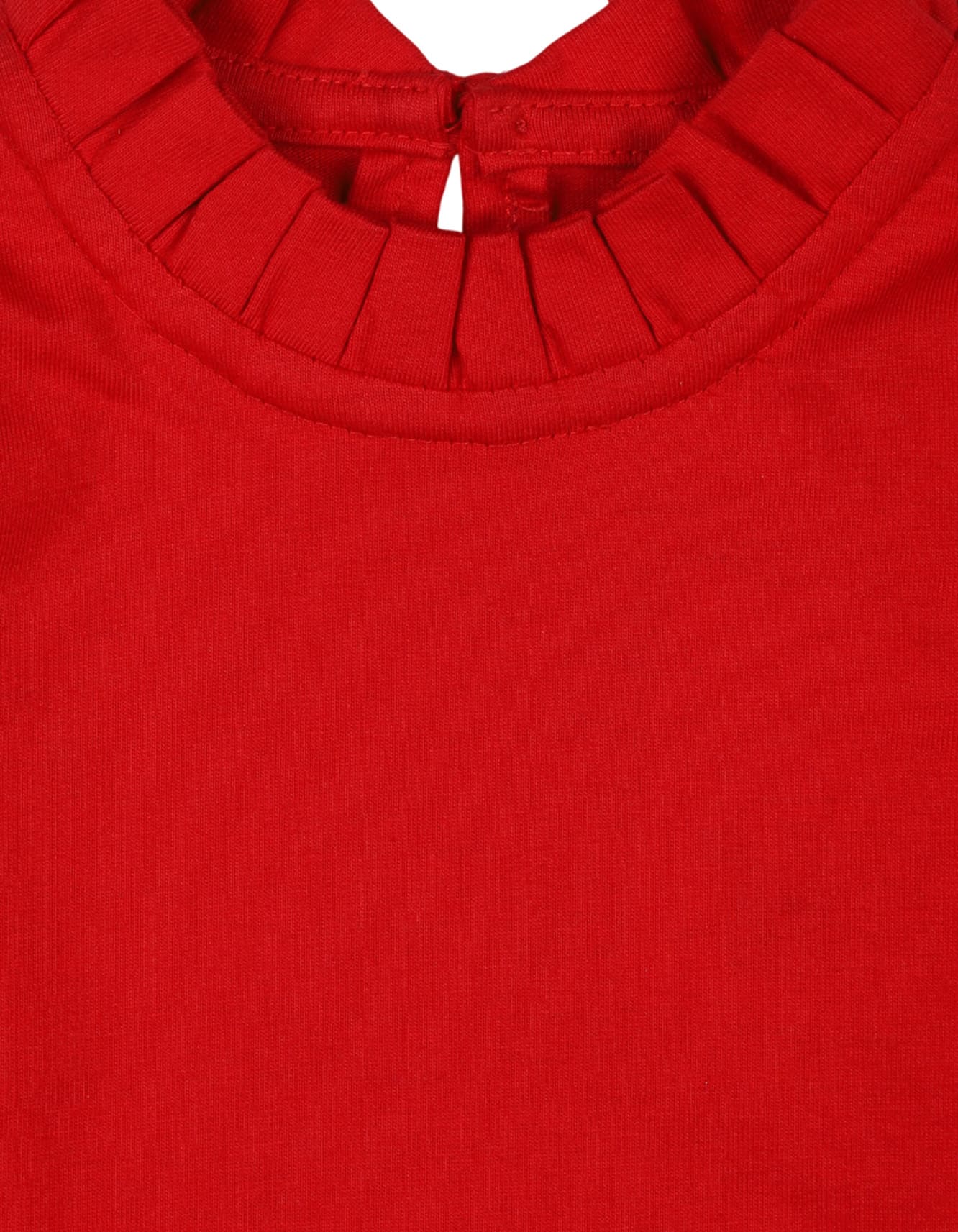 The red top adds vibrancy while the monochrome printed dress creates a fashionable contrast—making it a standout outfit for baby girls and girl’s.
