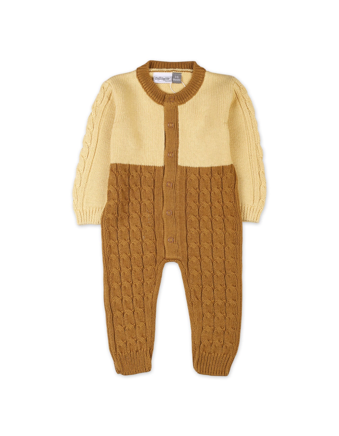 Made from premium-quality knitted fabric, this romper provides gentle warmth while remaining breathable and soft on delicate baby skin. The classic cable-knit detailing enhances both comfort and durability, while the full-sleeve and full-length design ensures complete coverage. A convenient front button closure allows easy dressing and quick diaper changes, making it perfect for everyday winter wear.