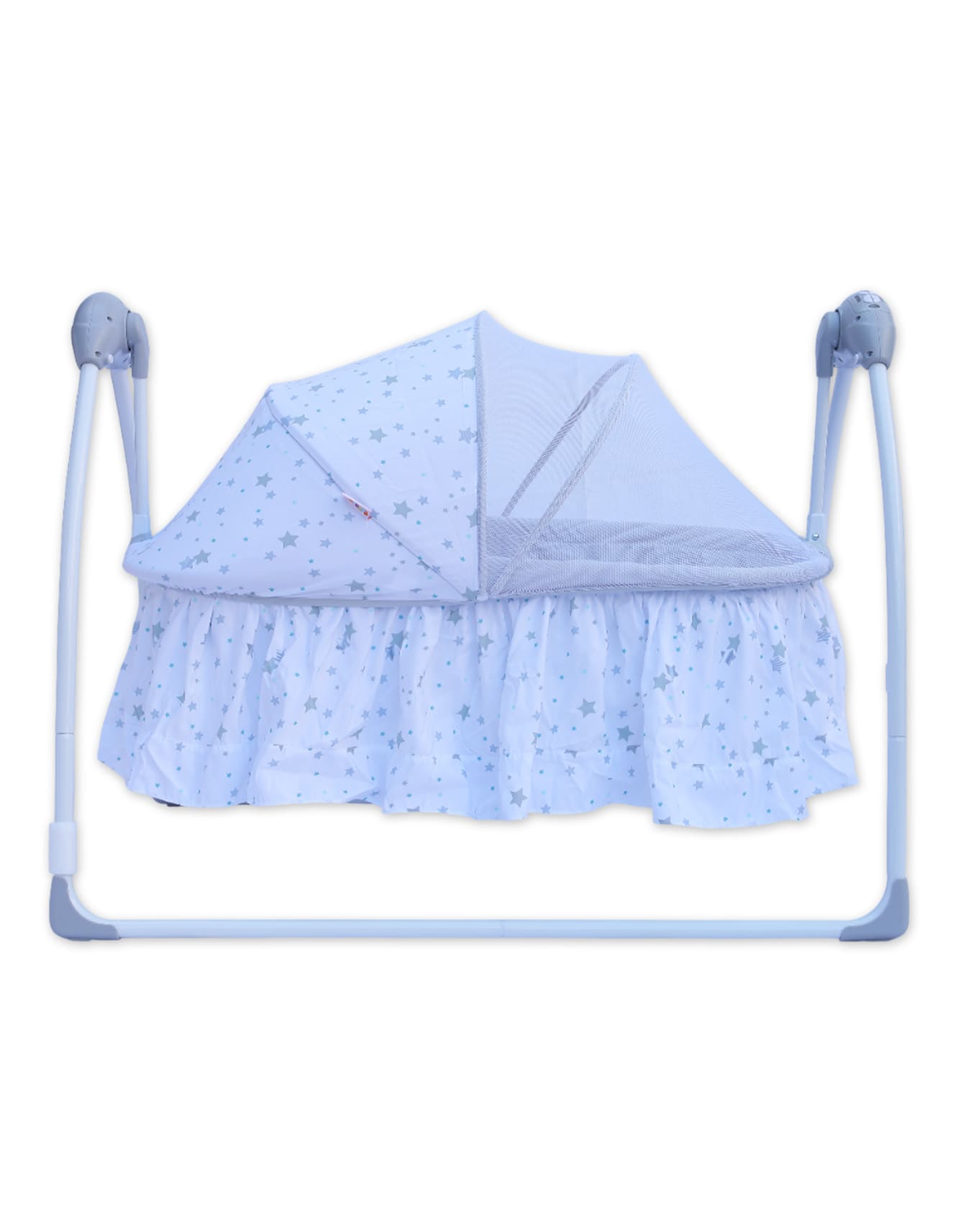 A standout feature of the Swing Bassinet Baby Electric Foldable Bambies Grey BM-SW-010 is its fully foldable frame and foldable cradle, making it exceptionally travel-friendly and easy to store. Whether used at home, outdoors, or during family trips within Pakistan, this foldable bassinet swing delivers maximum convenience for parents who are constantly on the move.