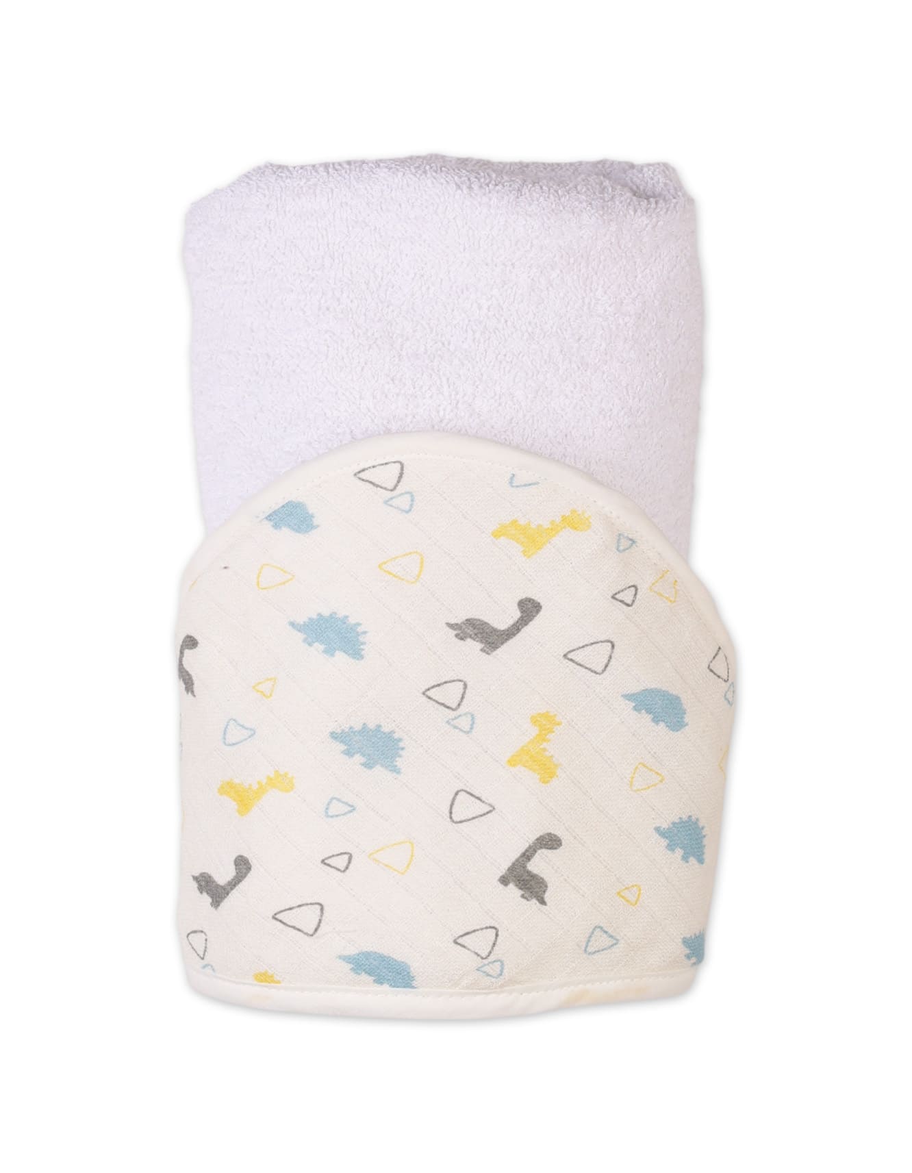 Newborn Hooded Baby Bath Towels Bambies Dino Cream and White at Zubaidas Pakistan