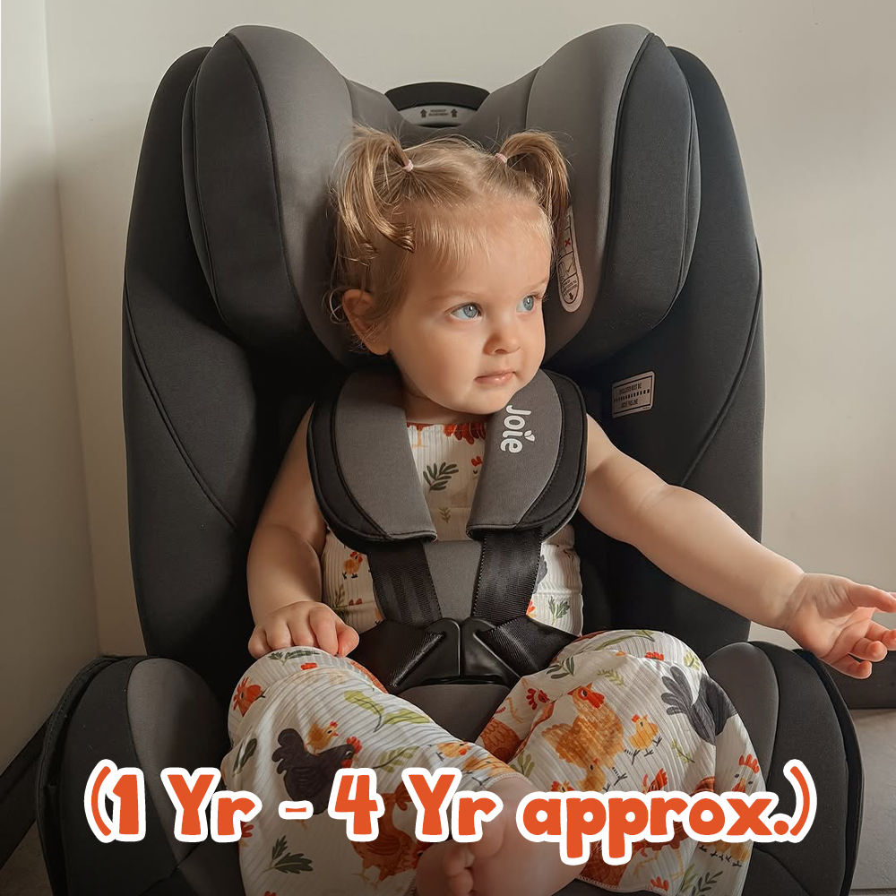 Stage 1 (1 Year – 4 Years Approx.) – Secure and supportive car seats that adapt to your growing toddler, offering enhanced protection for early development stages.