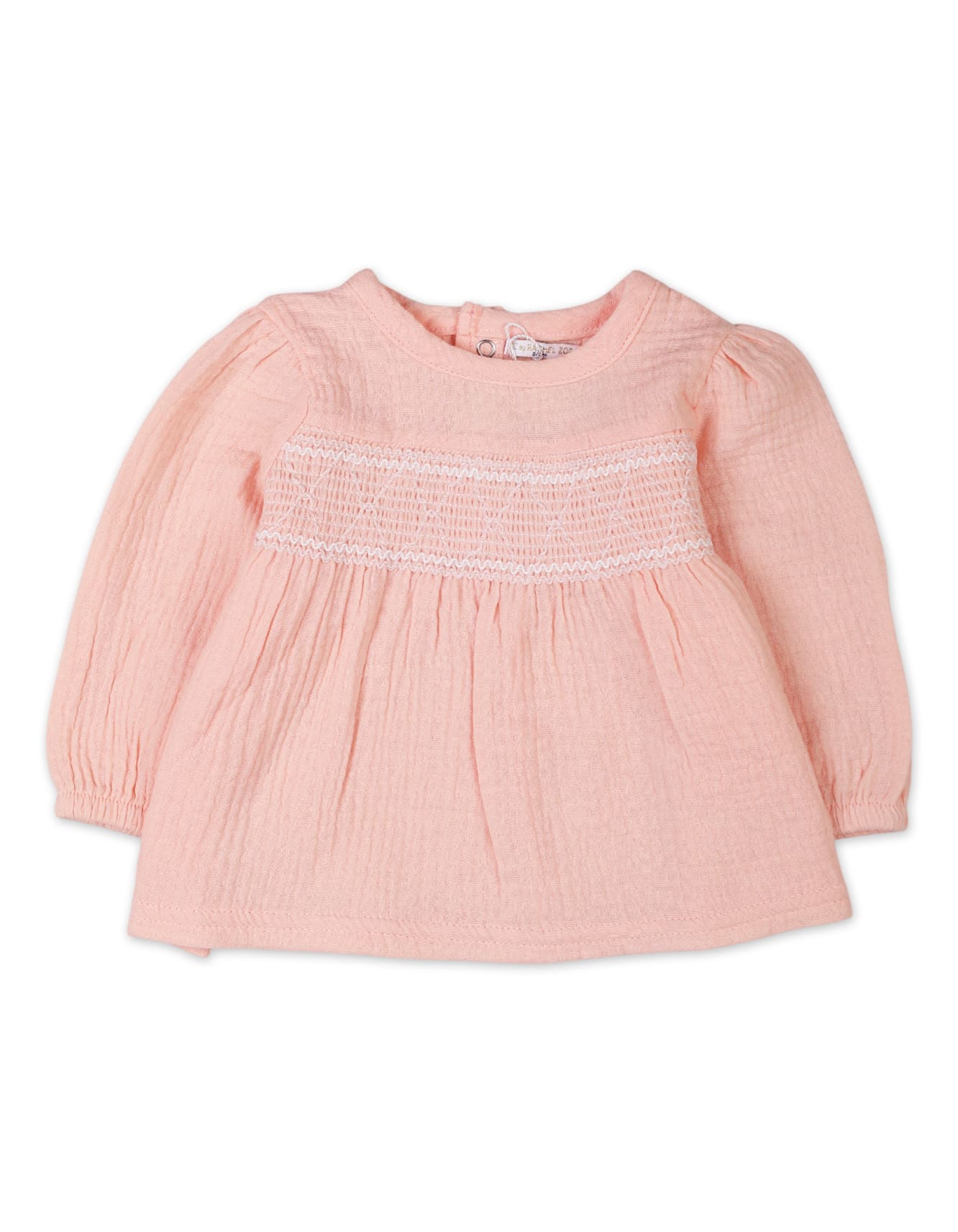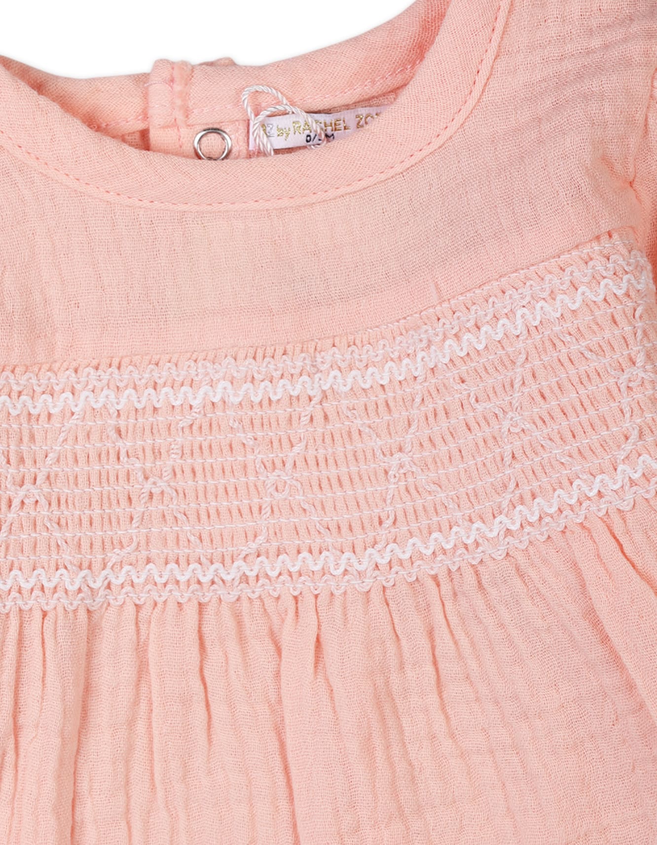 Give your little princess the perfect blend of elegance, softness and everyday comfort with this Bambies Baby 3 Pieces Suit Set, now available at Zubaidas, Pakistan’s most trusted baby and kids store for 50+ years. Beautifully designed for newborns and baby girls, this adorable outfit includes a peach-pink smocked top, a cute printed vest, and stretchy grey leggings, making it the ideal choice for outings, casual wear, family gatherings or gifting.