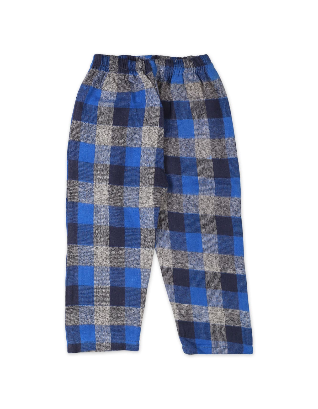 These classic Flannel Checkered Pajama/Trouser are thoughtfully designed for cold nights and cozy mornings. Featuring a soft, comfortable flannel material and a timeless checkered/tartan pattern in a sophisticated palette of Dark Blue and Grey these pants are perfect for sleepwear, loungewear, or even a casual winter outfit. These Bambies sleep trousers deliver unmatched warmth, comfort, and durability trusted by parents across Pakistan.