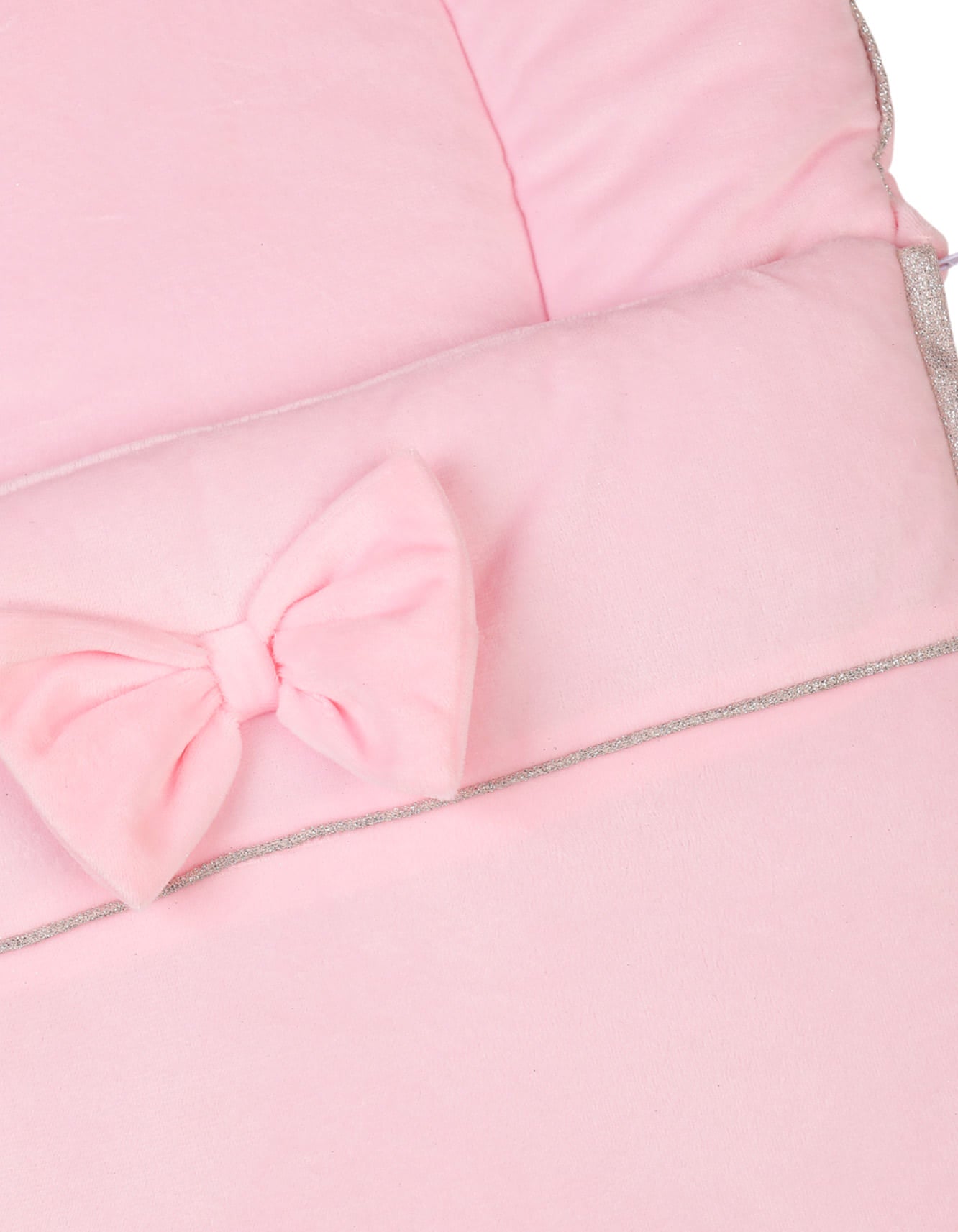 Lightweight and cushioned baby comforter featuring elegant bow detailing, ideal for resting, sleeping, and added warmth.