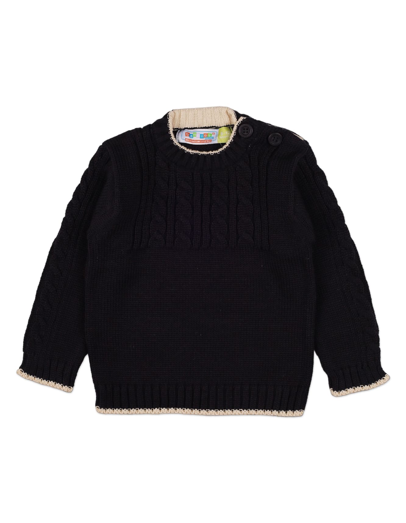 Collar and Cuffs: It has a ribbed collar, cuffs, and hem, adding structure and a snug fit to the sweater.