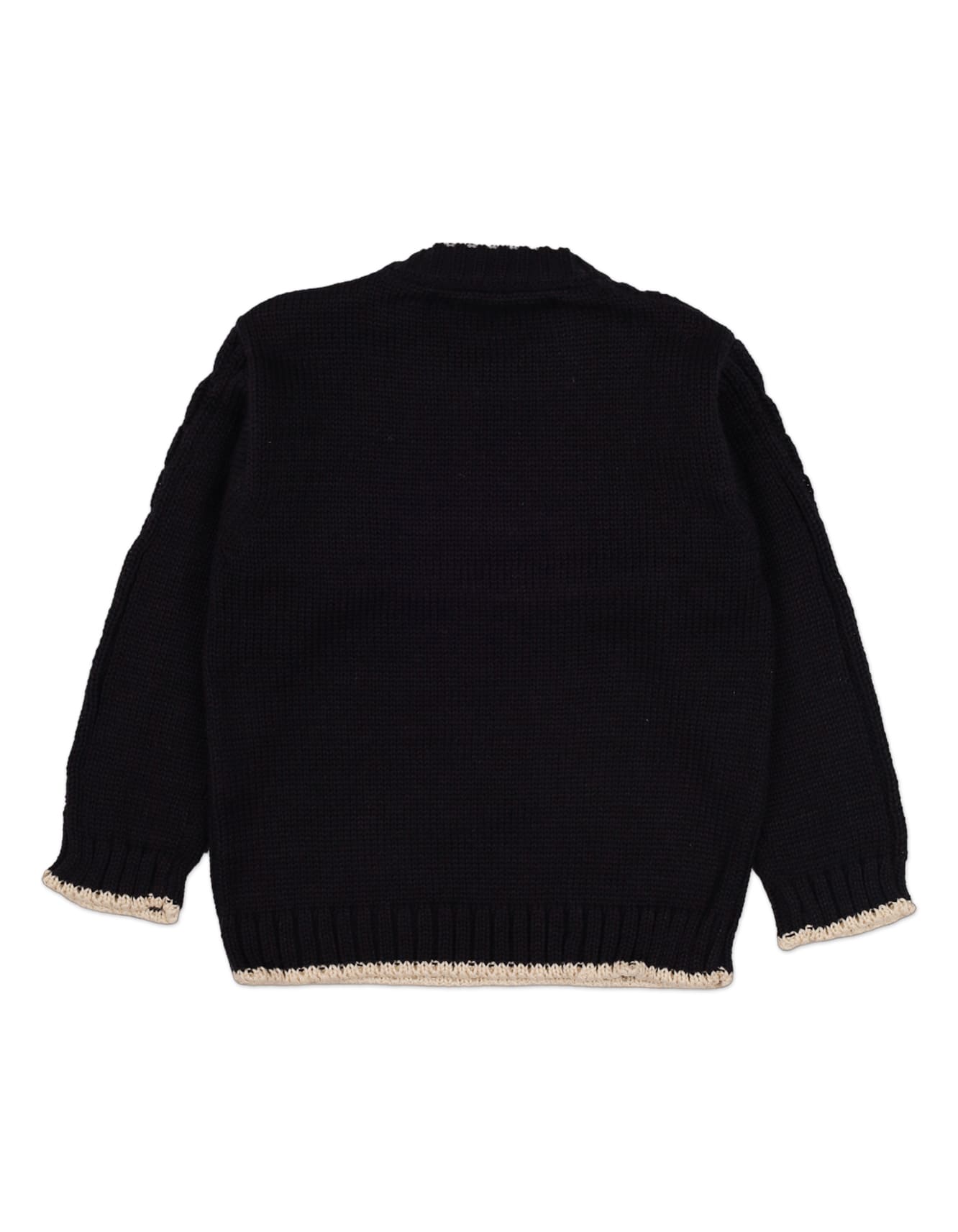 Buttons: The sweater has a front button-down closure with large, dark-colored buttons that complement the overall design.