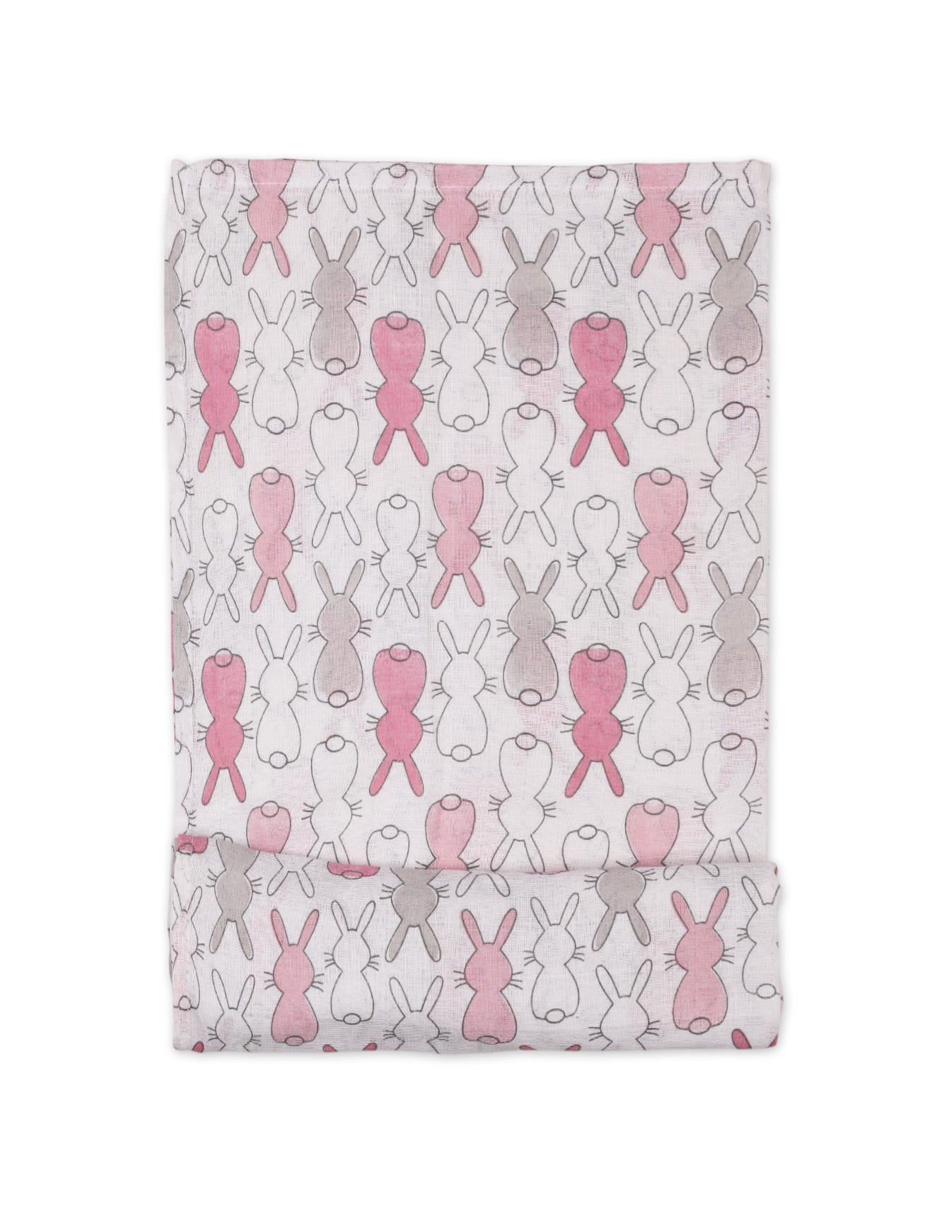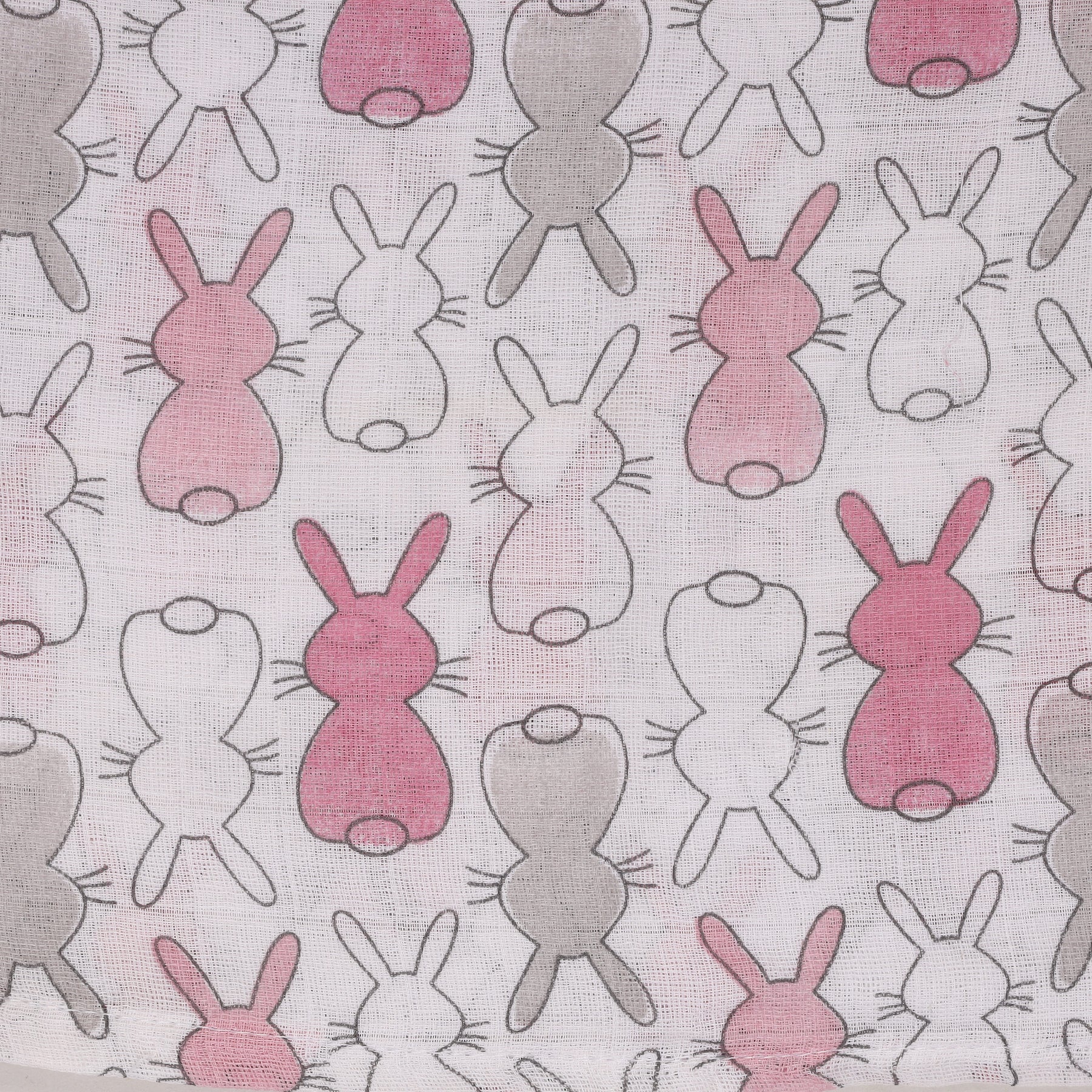 Provide your newborn with the gentle touch of the Bambies Muslin Sheets Pack of 3, exclusively available at Zubaidas. As Pakistan’s most trusted baby store for over 50 years, we understand that a baby’s skin requires the softest, most breathable fabrics. This set features two charming bunny-printed sheets in pink and grey tones, paired with one solid pastel pink sheet, making it a stylish and practical addition to any baby girl's nursery.