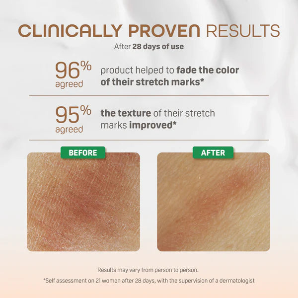 - Lightens Stretch Mark Scars: Specifically formulated to reduce the visibility of stretch mark scars.