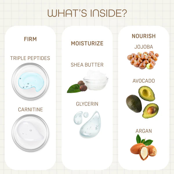 - Promotes Firmer Skin: Enriched with Triple Peptides and Carnitine for enhanced elasticity and tone.