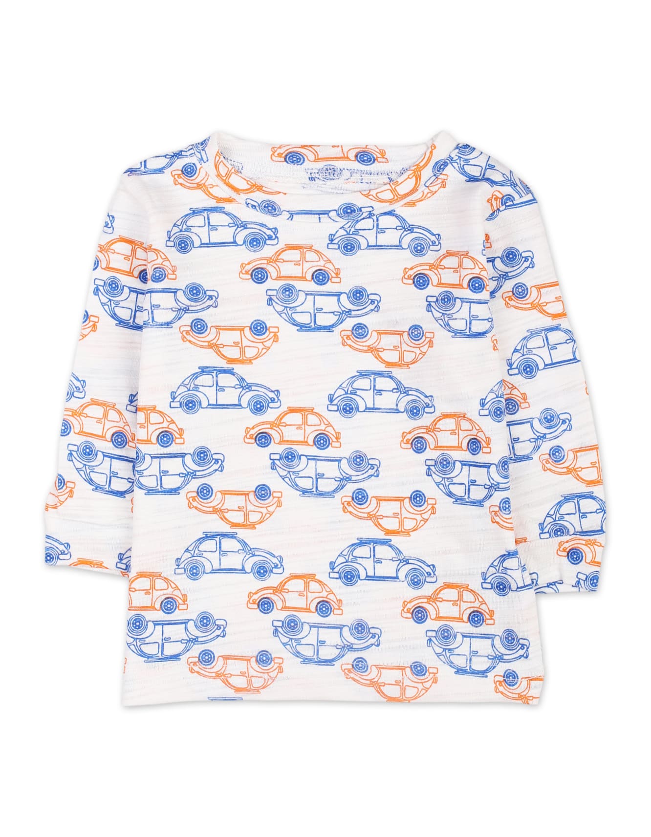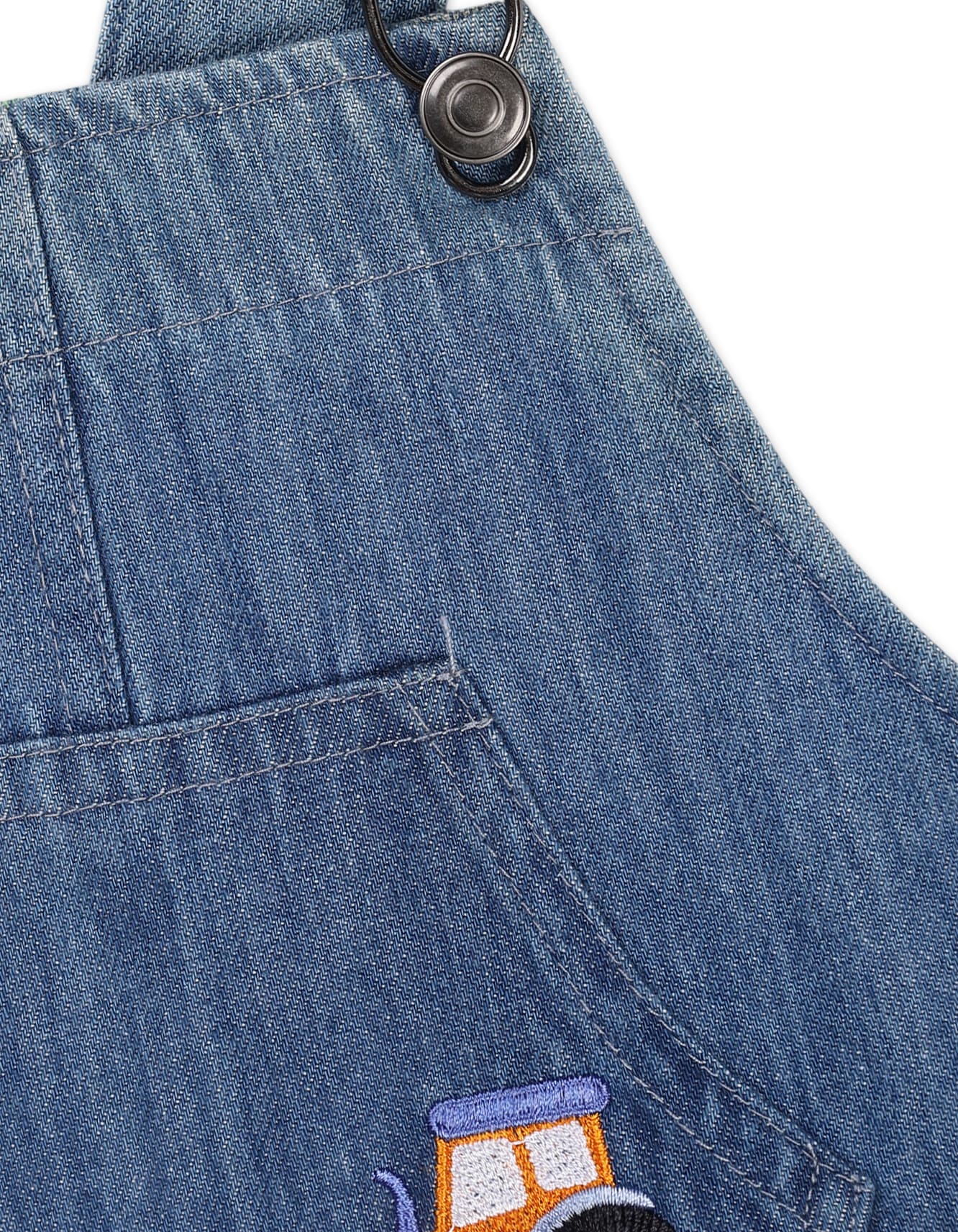 Features a fun all-over car print on the shirt and an embroidered vehicle detail on the dungaree, adding charm, personality, and a playful touch to the outfit.