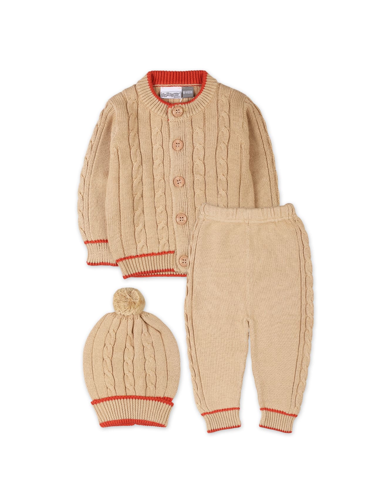 3 Pieces Newborn Knitted Winter Fashion Bambies Beige at Zubaidas
