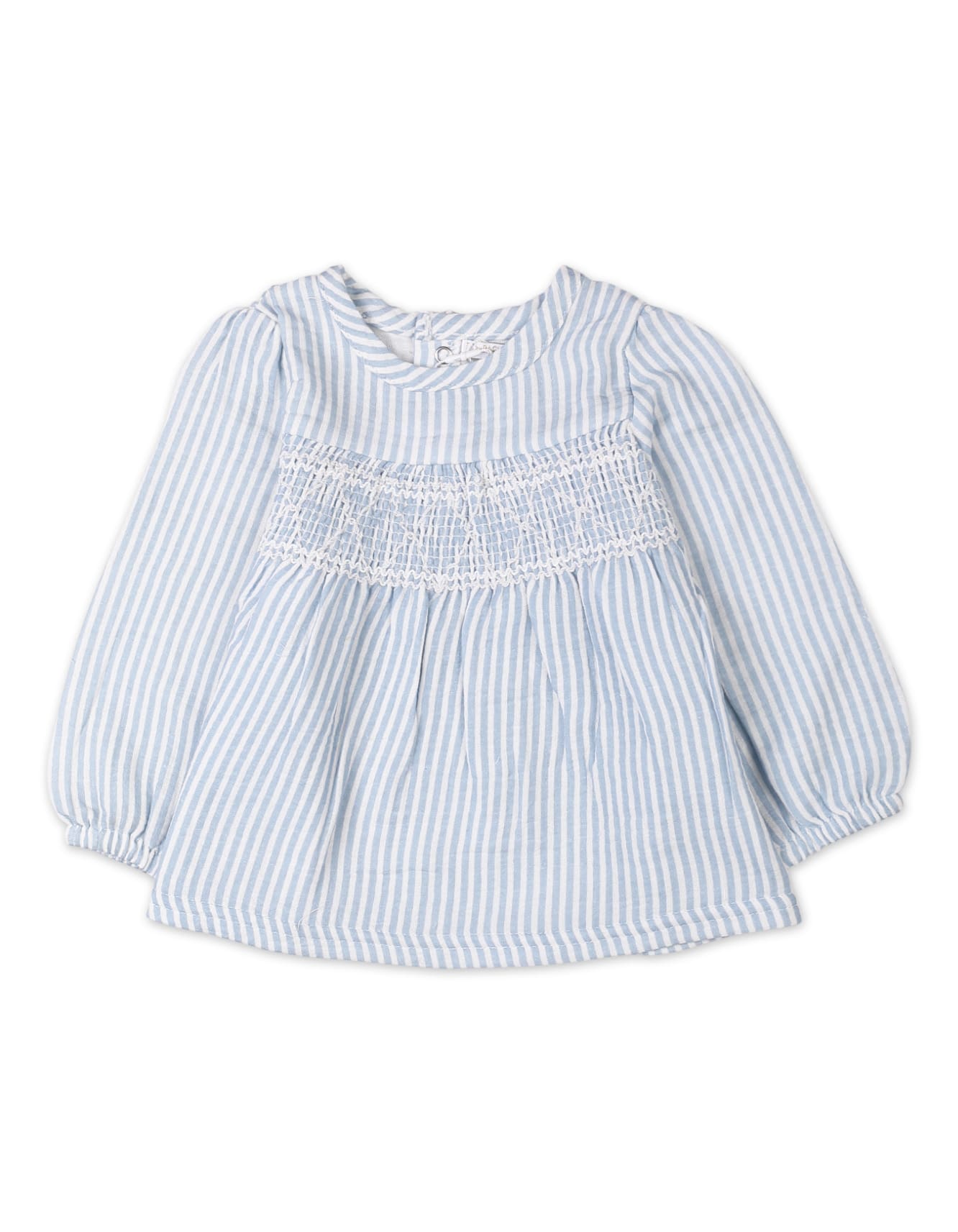Smocked Blue Striped Top – Beautiful detailing that adds charm and sophistication.
